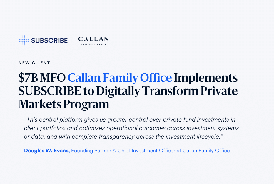 SUBSCRIBE is a fintech company digitally transforming the landscape of alternative investments for fund managers, institutional investors, wealth managers, law firms, and fund administrators. Our platform technology modernizes the archaic infrastructure of private fund investments by delivering a central operating system — catering to every role within the investment process empowering them to connect any fund, any investor, anywhere in the world on a single platform.